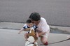 Daniel meets the neighbor dog