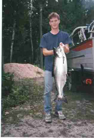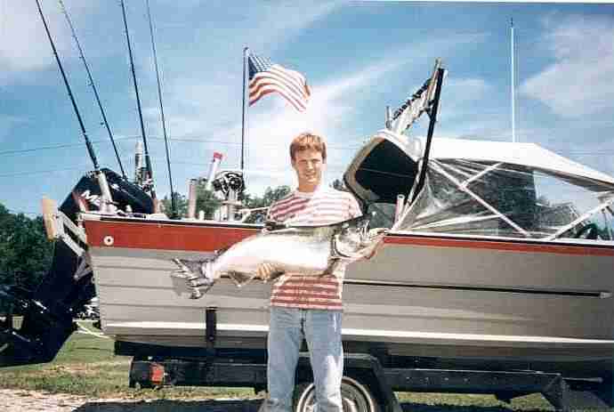 This is the 33 pounder again with the boat. Nice salmon.. Fun time...